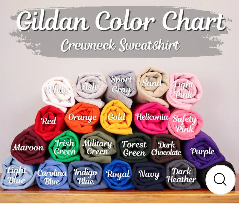Gildan unisex style sweatshirt. Comment color of sweatshirt, thread/ print color, and names on the sleeve ( separate by comas) up to 15 names