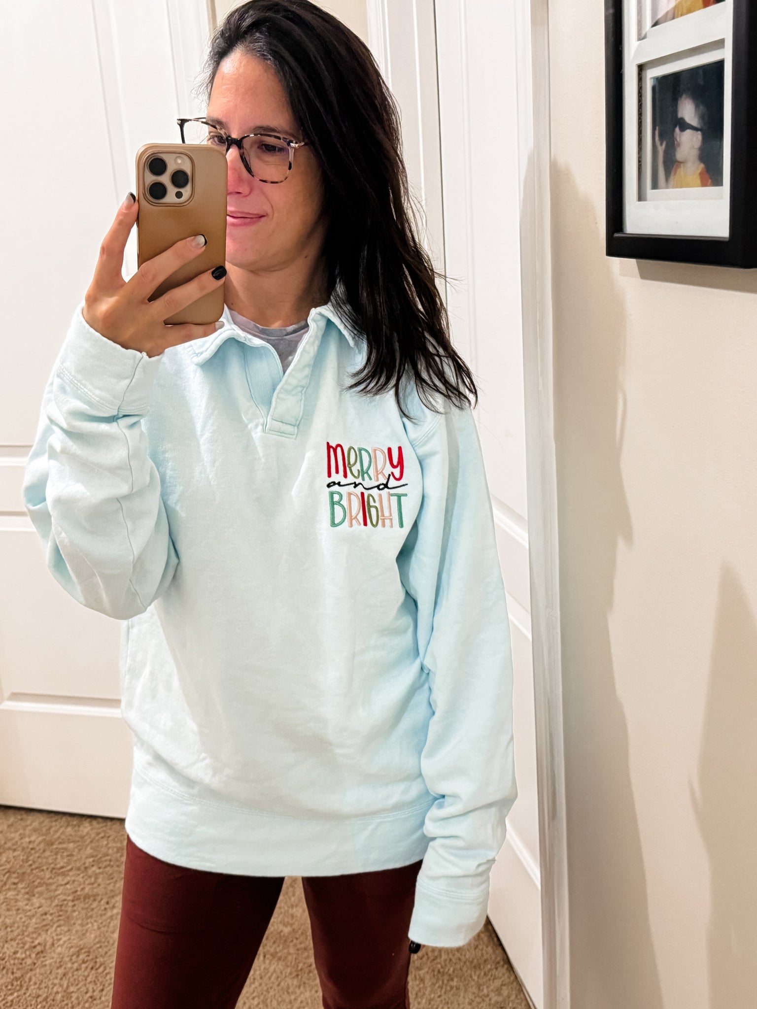 Comfort wash unisex fit polo collar fleece sweatshirt