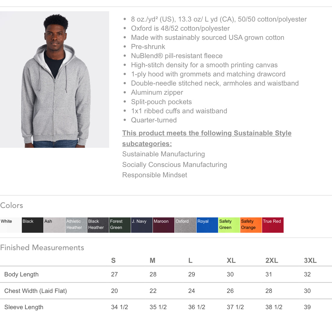 • 8 oz./yd² (US), 13.3 oz/ L yd (CA), 50/50 cotton/polyester