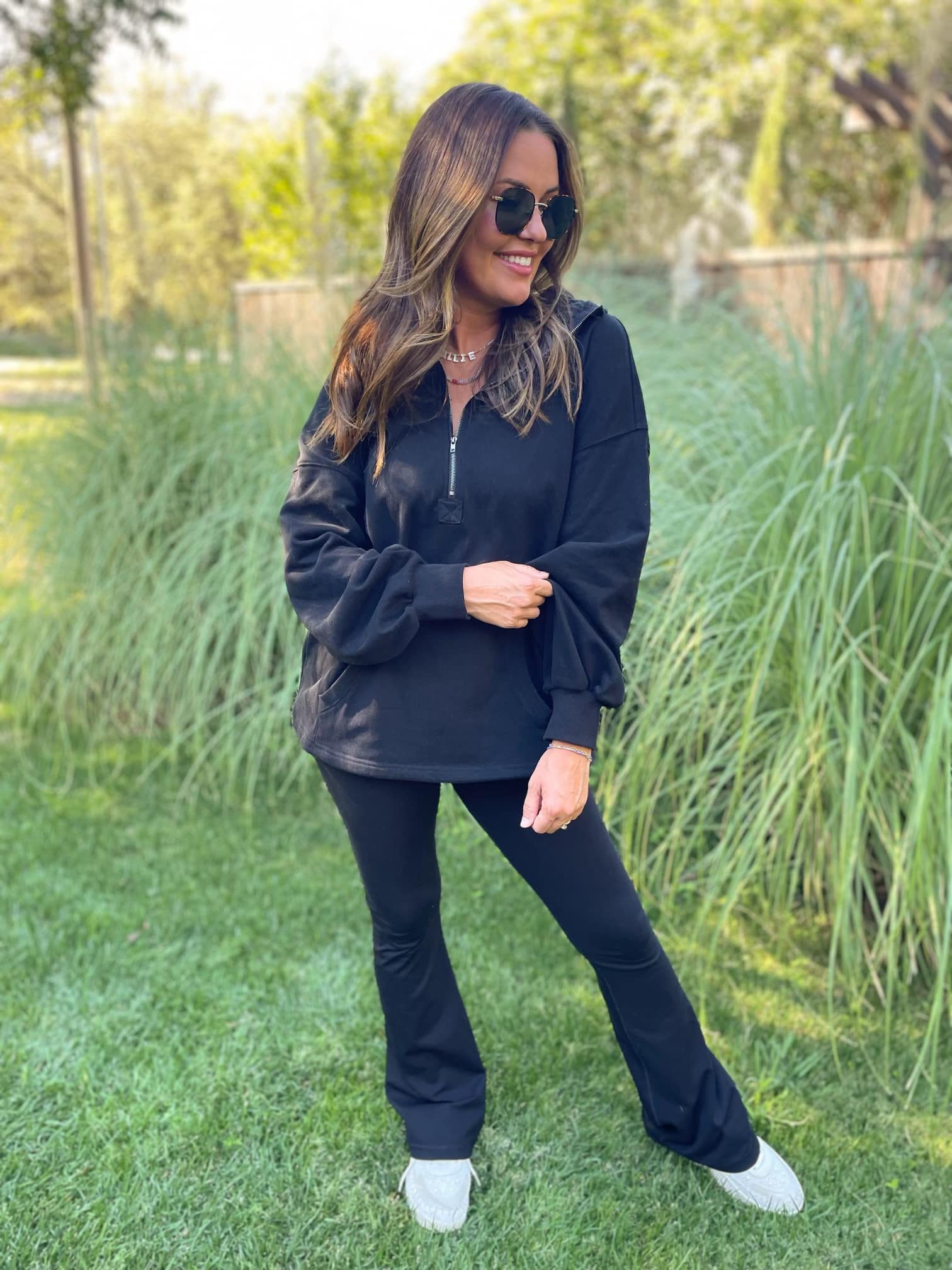 This oversized half zip hoodie will be on repeat all year long! The lighter weight makes it a versatile transition piece through any season and the relaxed fit keeps you feeling comfy with denim or leggings. Featuring a half zipper, adjustable cinch waist, kangaroo pocket, a drop shoulder design and oversized hood.