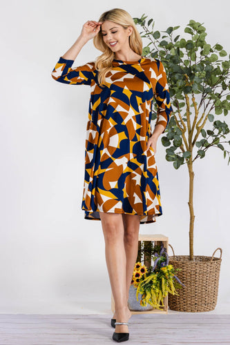 Celeste Full Size Geometric Round Neck Dress with Pockets