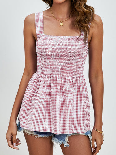 Smocked Plaid Square Neck Tank