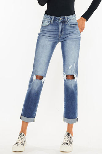 Kancan High Waist Distressed Hem Detail Cropped Straight Jeans