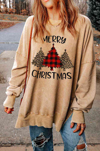 MERRY CHRISTMAS Graphic Slit Drop Shoulder Sweatshirt