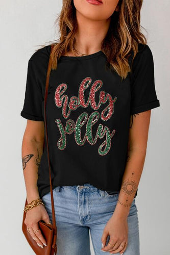 Sequin Letter Graphic Short Sleeve T-Shirt