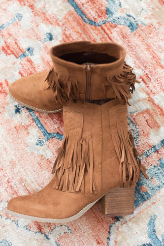 Sandra Fringe Booties in Tan