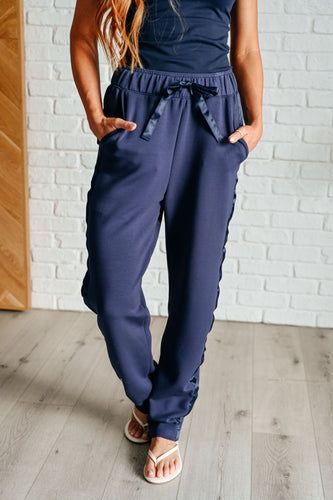 Lysa Satin Stripe Lounge Pants in Smoky Navy