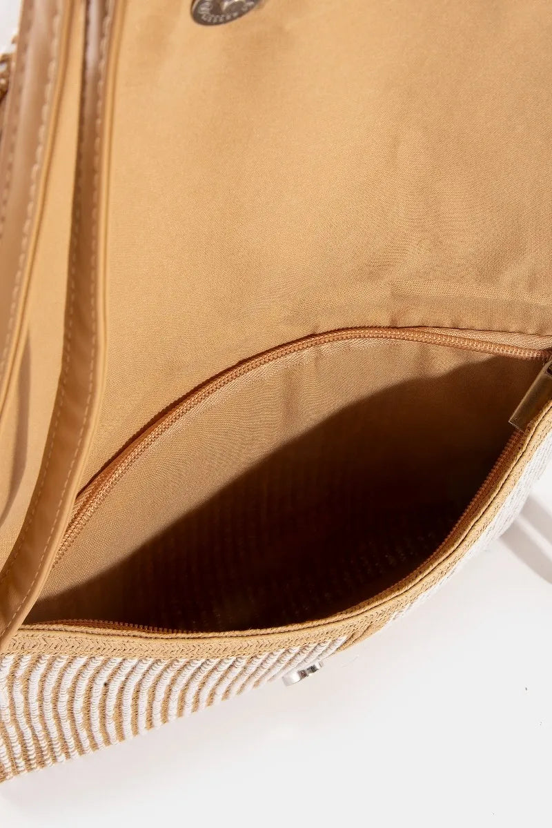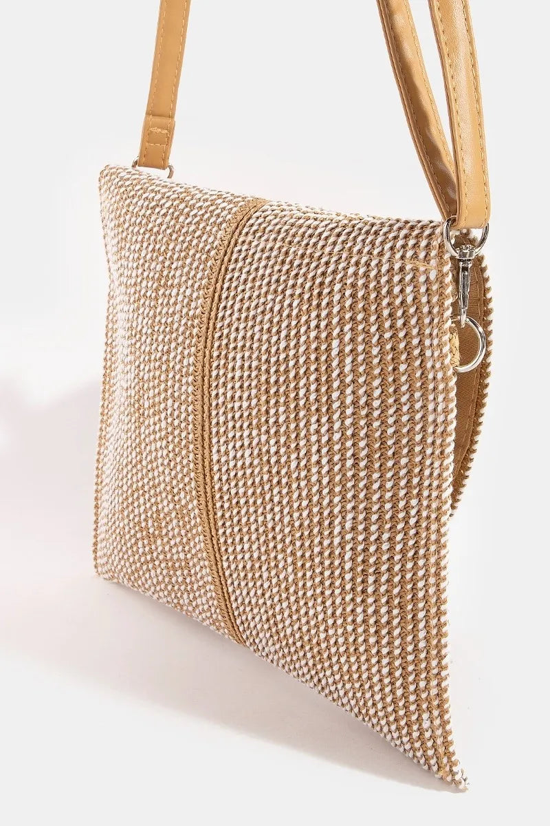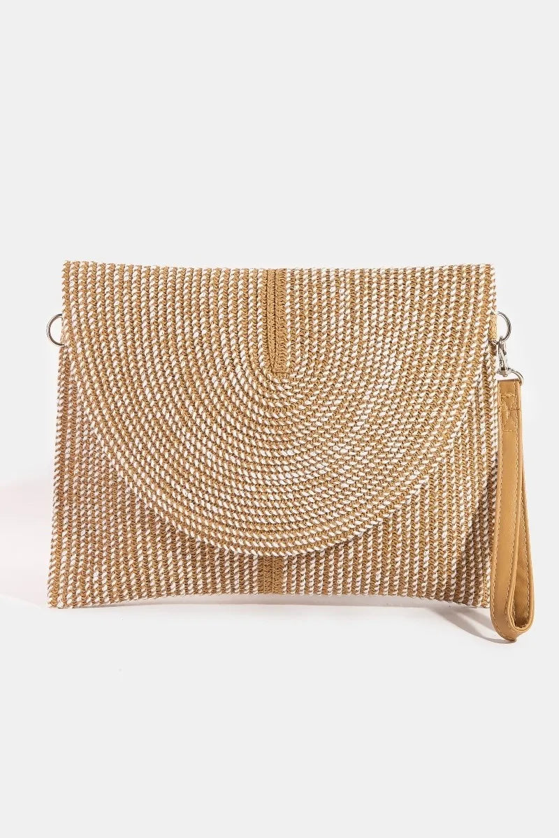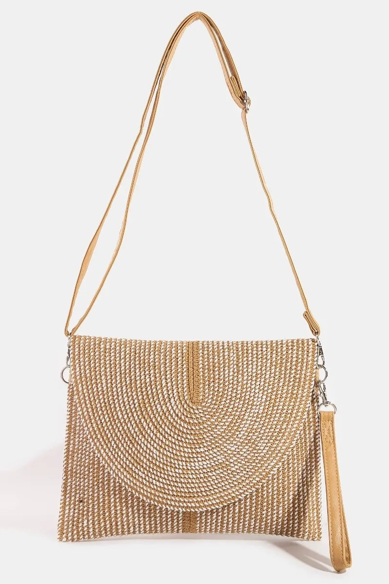 This stunning gold rhinestone crossbody bag features a fully embellished surface with sparkling crystals arranged in a mesmerizing radial pattern. Crafted with high-quality materials, the bag combines functionality with glamour through its convertible design - wear it as a clutch or use the adjustable tan leather-like strap for hands-free crossbody styling. The envelope-style flap closure ensures security while maintaining the elegant silhouette. Perfect for special occasions, weddings, cocktail parties, or any evening event where you want to make a statement. The compact interior provides just enough space for your phone, cards, keys, and lipstick.